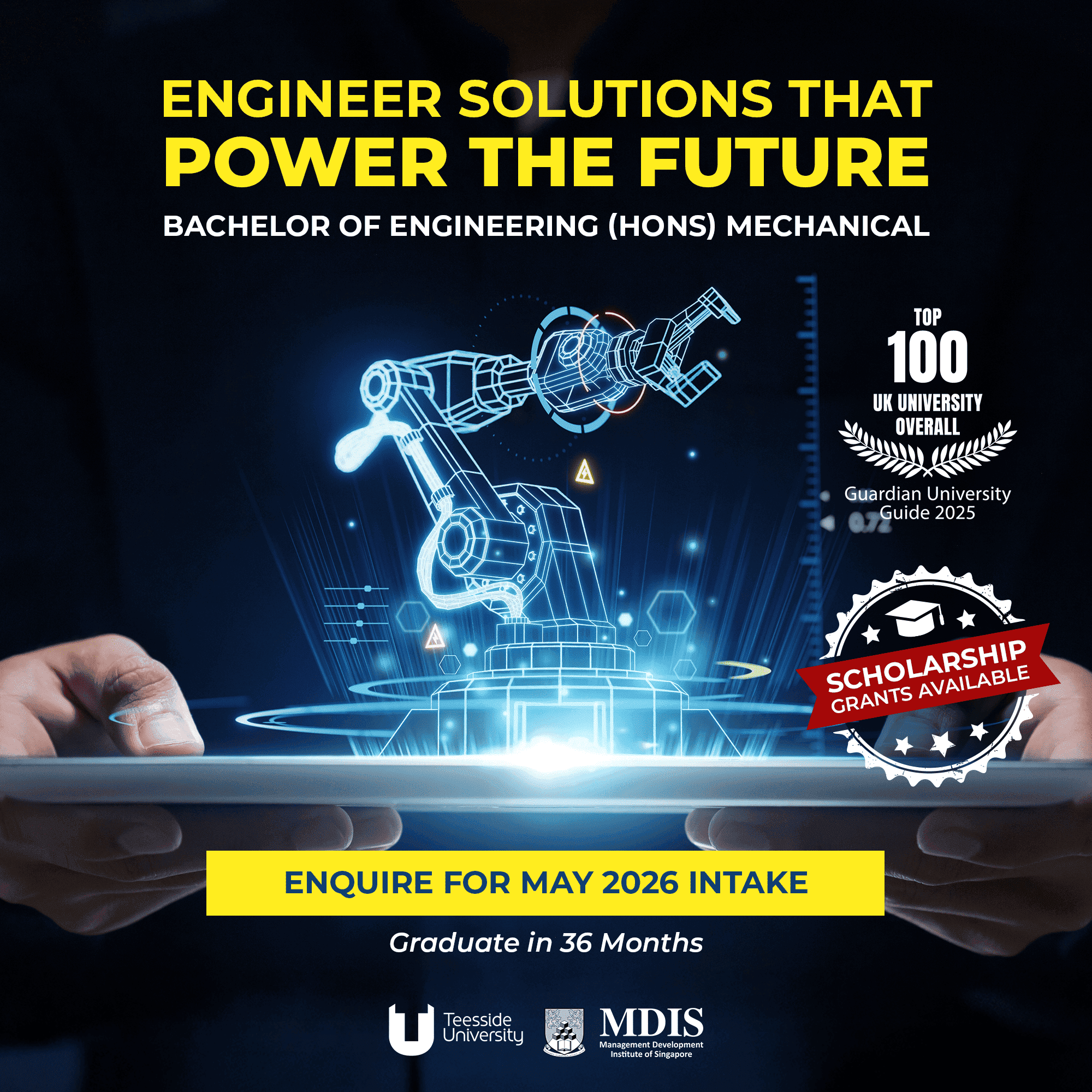 The Bachelor of Engineering (Hons) Mechanical develops creative thinkers who can tackle complex problems across industries—from manufacturing and automotive to aerospace and energy.